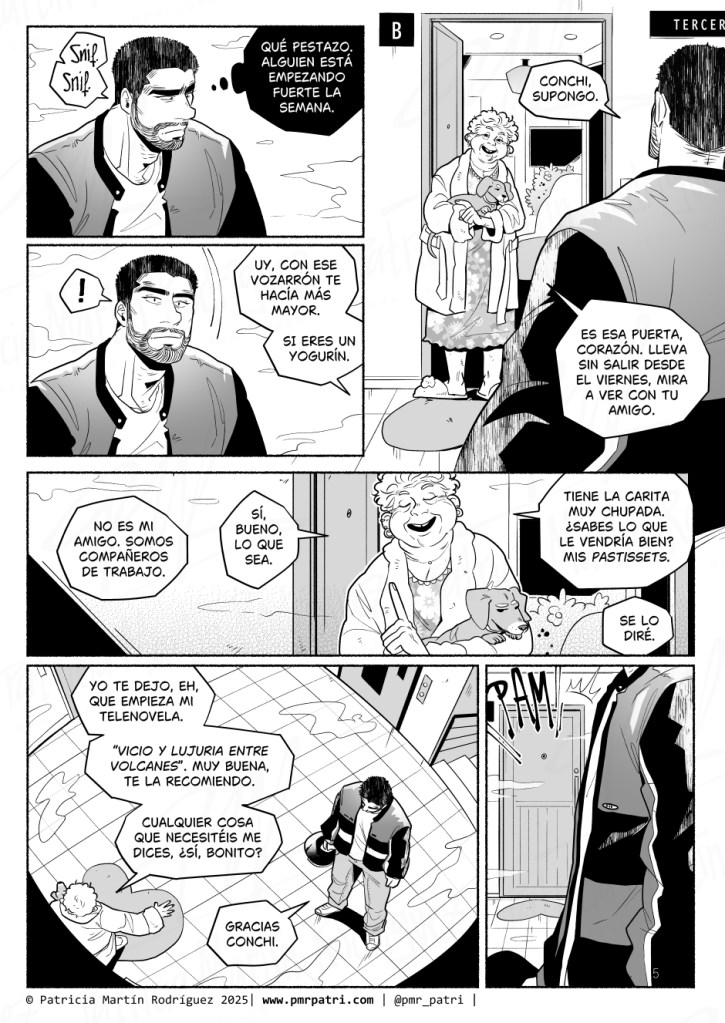 Mónisima la Conchi con su salchicha y su novela. Pregúntale de mi parte qué dia ponen «Vicio y lujuria entre volcanes» para vérmela asldkhalsdhToda la secuencia de ambos en el piso es genial. Me encanta verlos conociéndose, rompiendo lo que habían pensado el uno del otro por prejuicios y… ¡SONRIENDO! Sí, Rayco, esa «v» que hace con la boca es una sonrisa, por raro que pueda parecer (?) Ay, me mató el comentario de «tienes pinta de elfo druida, que se te dan bien las plantas» JAJAJAJAJAJA. Y si que sí, los orcos son las hostia 🔥