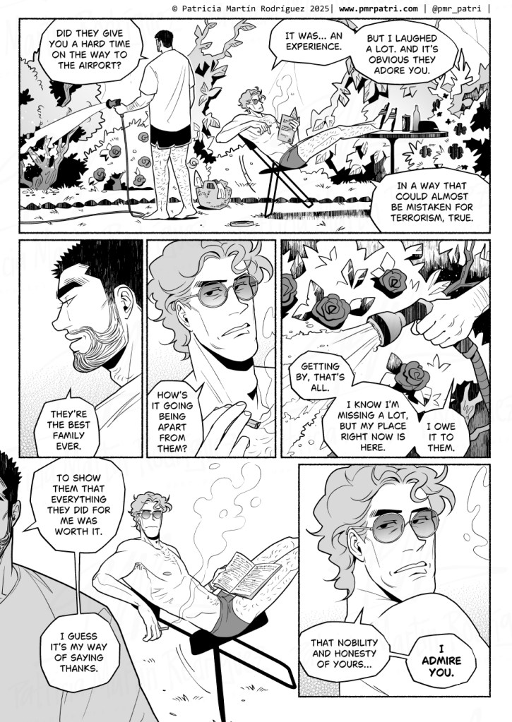 Oh, he’s already loved by Rayco’s family, so sweet! They might just be what he needs to get better, along Rayco, ofc. Dealing with depression isn’t easy (knowing it myself). And it’s very obvious they care about each other, each in their own way, even when using name calling. Hoping there won’t be any storms for them. But if there will be any, that they’ll become each others lighthouses and hang on tight together. As a personal favorite from a different comic said: I found someone who’ll always hold my umbrella. Thank you for the chapter, looking forward for the next update. Well wishes and blessings to you, Author!